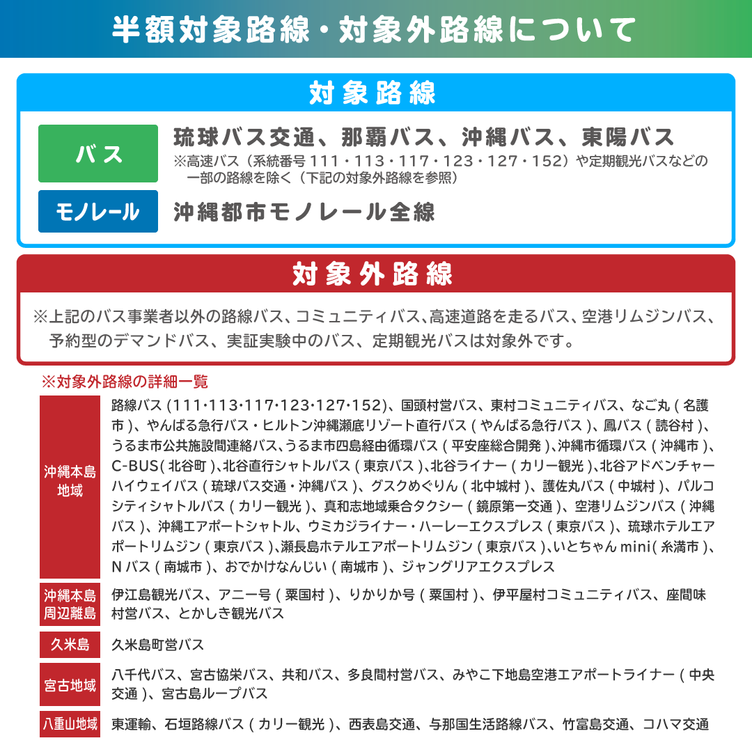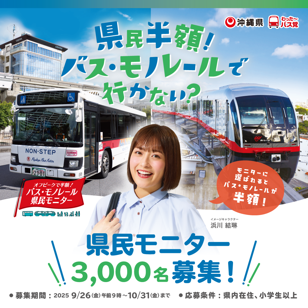 沖縄県では、バス・モノレールに半額で乗車いただき、アンケートや利用実態の調査等にご協力いただく